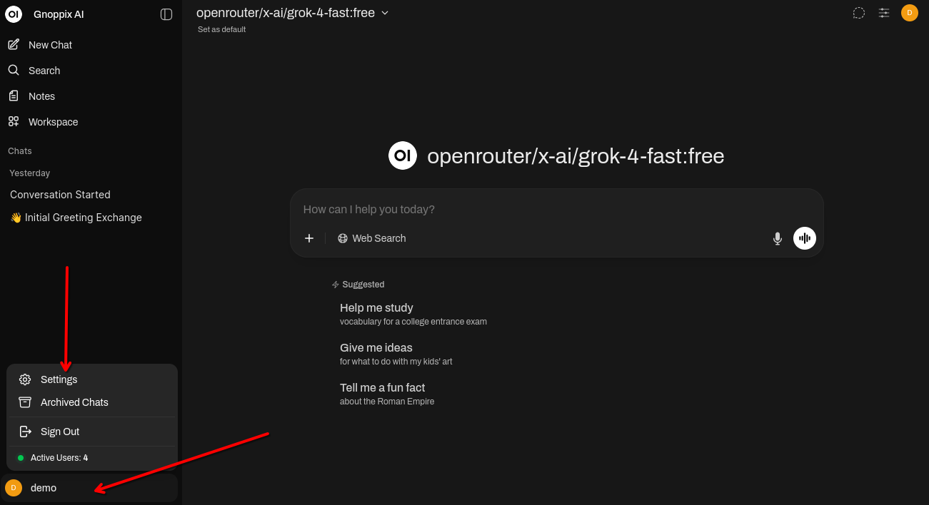 📤📥 Import/Export Chat History: Seamlessly move your chat data in and out of the platform via Import Chats and Export Chats options.