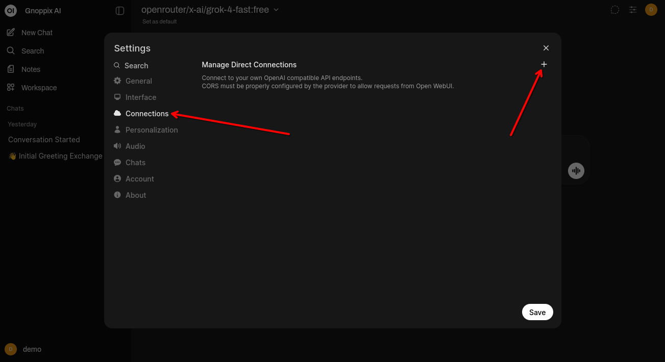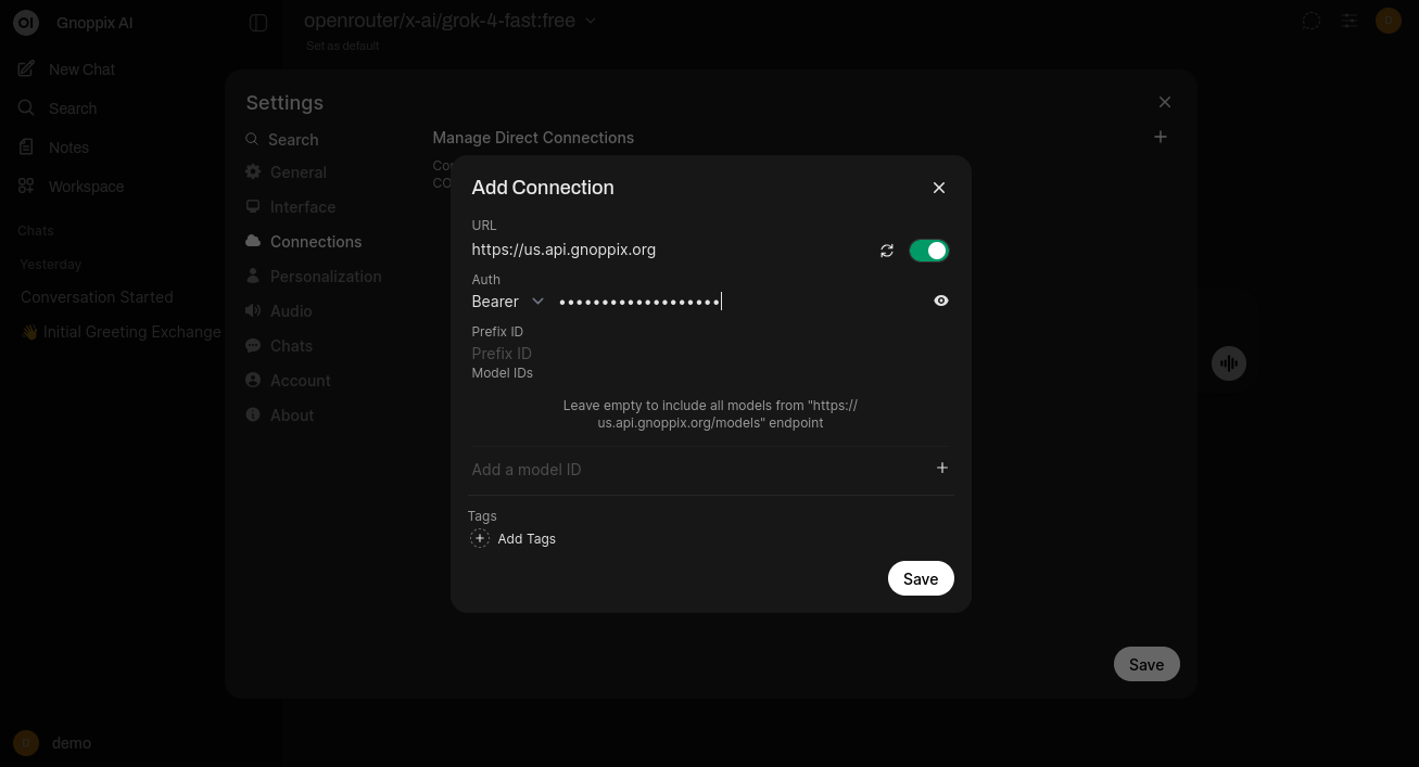 Alternatively you can use any Browser goto https://ai.gnoppix.org