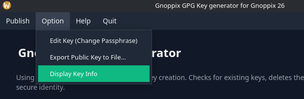 You will be asked what your key information is and what the fingerprint is. Just press the Option button, navigate to Display Key Info, and you will get something like this: